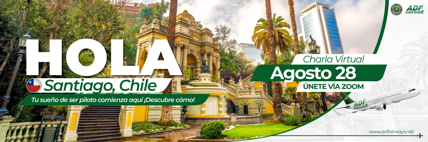 Resides en Santiago o en cualquier ciudad de Chile y sueña con ser piloto comercial, te invitamos este jueves 28 de agosto a las 7:00 p.m. te contaremos todo sobre nuestra formación en Miami, los pasos para aplicar y las oportunidades de carrera en aviación internacional.