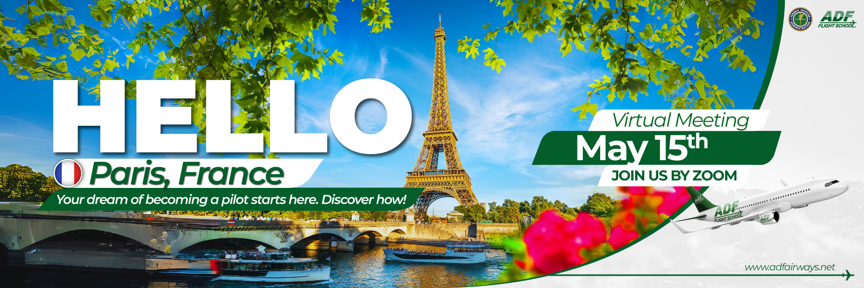 ADF Flight School, a well-known flight school in Miami, Florida, invites you to a free virtual meeting specially designed for aspiring pilots in Paris, France who want to become FAA-certified commercial pilots.